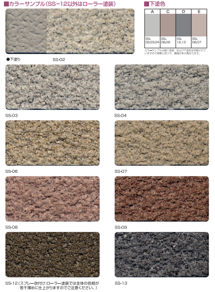 塗装方法 | ベース塗り:(砂骨ローラー、リシンガン)、パターン付け:(砂骨ローラー、タイルガン) |