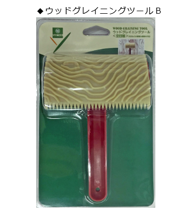 未乾燥の塗膜にツールをこすり動かすことで、簡単に木目調の模様を付けることができるデザインツールです。