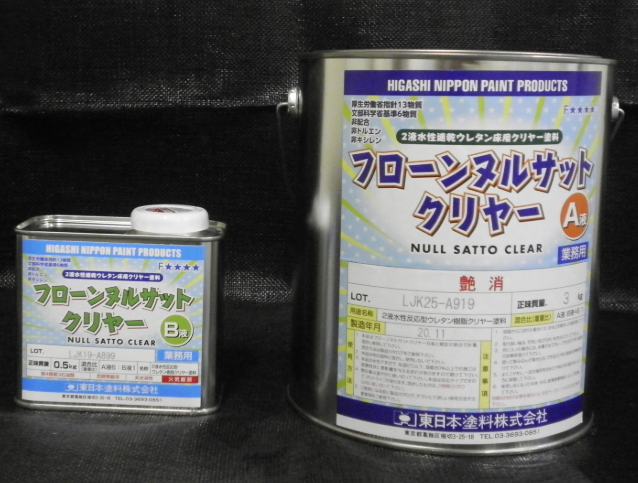 フローンヌルサットクリヤー 艶消 14kg缶セット、3.5kg缶セット 8,600円(税抜)~